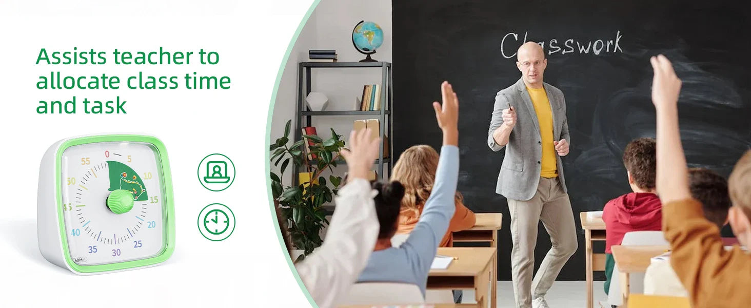With a 60-minute countdown, silent operation, and night light feature, this timer helps manage activities, study sessions, playtime, and bedtime routines in a calm and visual way. Ideal for classrooms, homes, or offices.