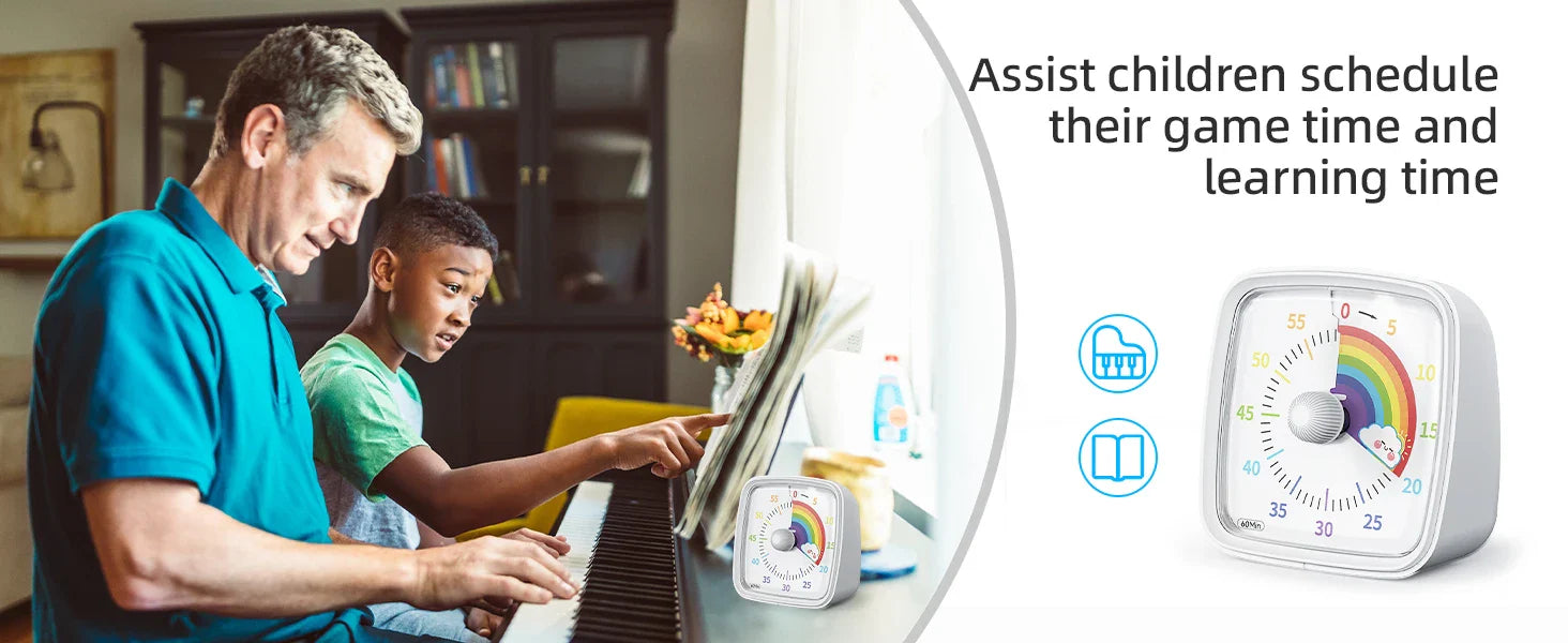 Helps children develop time management skills while assisting adults in staying on schedule for work, study, or household tasks.